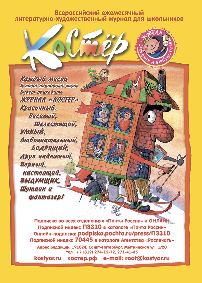 У читателей, сотрудников и авторов журнала «Костер» большой праздник: «Костру» 80 лет! К сожалению, история журнала еще не написана, но были отдельные статьи, очерки-воспоминания, радиопередачи, была, наконец, и устная память, которая передавалась из уст в уста. Вот, к примеру, каким было самое начало. В принципе решение об учреждении журнала для ребят среднего школьного возраста состоялось, но не было еще названия. Собрались как-то детские писатели и стали предлагать вариант за вариантом, но все предложения как-то не подходили по тем или иным причинам. И вдруг Алексей Иванович Пантелеев, уже известный в ту пору мастер детской прозы, предложил: «А что, если назвать наш журнал „Костром“?» Идею сразу одобрили, подхватили, а Пантелеева в шутку ветераны стали величать «писателем, который зажег „Костер“». Я лично знал Алексея Ивановича с дошкольных лет: наши семьи жили по соседству на казенных литфондовских дачах в популярном в послевоенные годы дачном месте, на Всеволовской, как тогда говорили. Удобств было немало: близость к городу, не броская, но по-своему отрадная природа с лугами, полем, озерцом по дороге на станцию Мельничный Ручей, но главное, что подчеркивал Пантелеев, «земля-то войной не затронута, мин, снарядов, гранат нет, и наших ребят можно без опаски пускать на прогулки». Продолжение