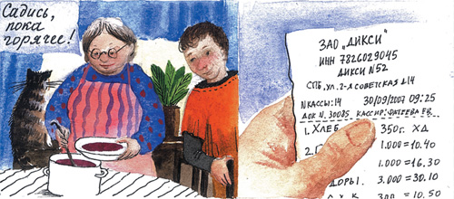 Первым делом бабушка накормила любимого внука, а потом педантично взялась проверять чек — не слишком ли много Кеша потратил, хотя и не ее деньги, а все равно жалко, ведь молодежь нынче такая неэкономная!