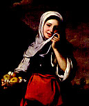 Персонажи другого великого испанского художника, Б. Мурильо — маленькие обитатели севильских улиц. Они изображаются художником с симпатией и сочувствием, несколько сентиментально, но всегда искренне. «Девочка — продавщица фруктов», больше похожая на сельскую жительницу, чем на горожанку, застенчива и мила.