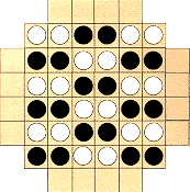 Играют в нее на необычной 52-клеточной доске (ее легко можно начертить на картоне). Для игры требуется 36 шашек (фишек) — по 18 каждого цвета.