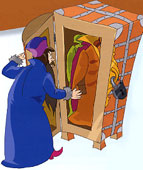 Вы, наверное, уже знаете, что долгое время для хранения всевозможных вещей служил не шкаф, а простой ящик с крышкой — ларь. Это был и сундук, и шкаф, и кровать, и скамья, а иногда и стол. Обычно ларь для прочности обивали металлическими полосами, иногда к нему приделывали довольно высокие ножки. А потом кто-то догадался поставить сундук набок и снабдить полками — так появился первый шкаф.
