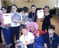 определение способностей у будущих мастеров большого тенниса. Наверное, некоторым кажется, что в искусстве перебрасывания со стороны на сторону маленького мячика нет ничего мудреного. А попробуйте-ка сами взять ракетку в руки! Мячик то летит не туда, то вообще не хочет встречаться с ракеткой. Намучаешься, пока его укротишь, а тут еще и соперники наступают — это же не просто игра, здесь победит только самый лучший — самый смелый, самый ловкий, самый веселый! Помогли участникам немного расслабиться перед финалом веселые клоуны, которые провели с ребятами конкурсы. По итогам соревнования первое место с небольшим отрывом получил 4-й «Б» класс. Победителей наградили медалями, грамотами и, конечно, призами! Так же были награждены все команды, которые принимали участие в соревнованиях, и болельщики, которые помогали юным спортсменам своей поддержкой.