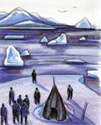 На льдине опять потянулись безотрадные дни. Был уже июль. Морская вода потеплела, и льдина, подтаивая снизу, становилась тоньше и тоньше. Все чаще в лагере говорили о советском ледоколе «Красин», надеясь только на него. А он в это время с трудом пробивал себе путь во льдах.