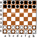 Начальная расстановка шашек — в две шеренги. Далее...