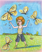 БабочкаВесною бабочка-красавицаС лучами солнца просыпается Порхает весело, искусница, Как будто в воздухе купается. Не страшно, что она — капустница: Немного съест она — безделицу, Что сердцу мило — окупается… Кто ж с ней капустой не поделится? |