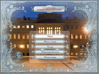 Хотите совершить увлекательное путешествие во времени? В Новый год возможны и такие чудеса! Для этого достаточно вставить в компьютер CD-ROM под названием «4 века рождественских праздников. Аничков дворец» И мгновенно перенестись в исторические залы императорского Аничкова дворца на Невском проспекте. И тут начнется самое интересное! Диск — образовательно-игровой, а это значит, что помимо самых популярных жанров компьютерных игр вас ждут не менее увлекательные познавательные задания.