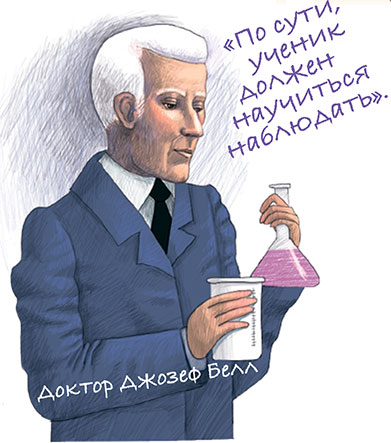 Доктор Белл производил огромное впечатление на своих студентов. Невероятно внимательный и наблюдательный, он умел по мельчайшим деталям поставить диагноз пациентам ещё до того, как они сообщали ему свои жалобы. А студентов Белл учил не только врачебному мастерству, но и состраданию к людям.