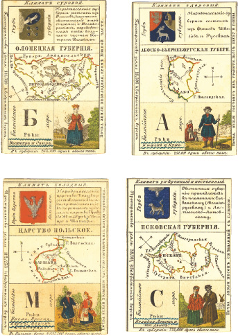 | «Альбом географических карт России». На данном изображении представлены лицевые стороны карт из колоды. ГМЗ «Петергоф» |
