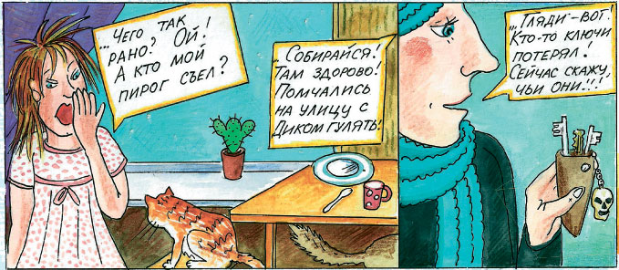 В девять утра Кеша разбудил Инну, чтобы бежать на улицу с псом Диком. На крыльце он нашел ключи, потерянные кем-то из соседей. Кеша стал думать, кто это мог быть?