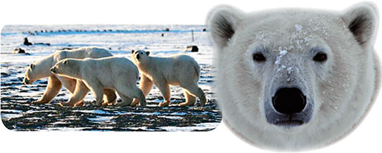 Белый медведь (Ursus maritimus — полярный, или морской медведь) — единственный вид сухопутных млекопитающих, полностью перешедший от жизни на земле к жизни на дрейфующих морских льдах Арктического бассейна. Важно помнить, что белых медведей можно встретить только в арктических широтах, вблизи Северного полюса — в Антарктиде, вблизи Южного полюса, белые медведи не обитают. Белый медведь хорошо плавает: при оптимальных ледовых условиях белые медведи могут доходить до Северного полюса, однако их основные места обитания — шельф Северного Ледовитого океана.