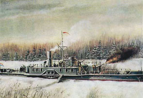 Гораздо дольше военных пароходо-фрегатов просуществовали пассажирские колесные суда. Скорость и маневренность для них были не так важны, важнее было удобство пассажиров. А судно с гребными колесами было шире винтового и поэтому меньше подвергалось качке. Над широкими колесами можно было устроить дополнительные помещения и перевезти больше пассажиров и груза. Еще дольше — до середины двадцатого столетия — прожили речные колесные пароходы, применявшиеся для буксировки барж. Они не только трудились на перевозках грузов, но и сражались в Великой Отечественной войне. Две канонерские лодки Волжской флотилии, отличившиеся в Сталинградской битве — «Усыскин» и «Чапаев» — были переоборудованы именно из таких пароходов.