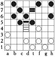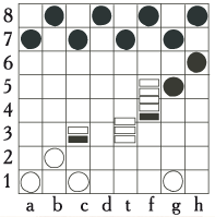 3. d4:f6 g3-h44. g7:e5 a7-b6