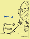 Следующий этап — это проклейка головы марлей (основы для левкаса). Понадобятся узкий бинт и клейстер (рис. 3). Теперь можно голову покрыть левкасом, который делается из столярного клея, масляных белил для живописи и сухого пигмента белил (тальк, зубной порошок). На паровой бане разводится столярный клей. Когда клей растворится в воде, его пробуют пальцами: если пальцы немного слипаются, то клей получился. В остывший клей (300 г) выдавливается из тюбика с масляными белилами «колбаска» длиною в 10 см. Неплохо для эластичности добавить желток яйца. В этот раствор осторожно высыпается сухой пигмент белил, и все размешивается до состояния густой сметаны. Левкас готов.