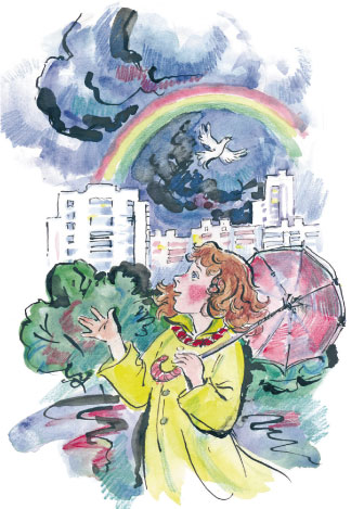 Дорога к домуТуча лужу поклевала,Частым дождиком устлала. Пузыри расплылись, В море превратились. А по морю я пойду, И за тучу загляну. Вижу: радуга-дуга Комендантский обняла. |
