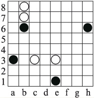 1. d3–c5 d8–e62. c5:e6 f8:e6