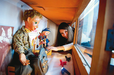 Влад Зайцев остановился у необычной экспозиции «XXI век. Россия в игрушке», он уверенно рассказывает: «На самой верхней полочке — картины блокадного Ленинграда; фарфоровая кукла, похожая на ту самую, которую голод и война отняли у Надежды Михайловны. Там же — послевоенная кукла девочки. Она резиновая. У нас в школе работает учительница, которая помнит такую же, потому что очень любила ее грызть. А посередине — керамический пупс. Один из наших учителей как-то пошутил и сказал, что этот пупс ночью пытается выбраться из шкафа, ведь так много людей за сто лет прикасались к этой кукле. А еще здесь набор фарфоровой посуды, которым играли во время войны дети, и два маленьких игрушечных чугунных утюжка, которые, нагрев, можно было приложить к своим замерзающим ручкам».