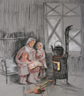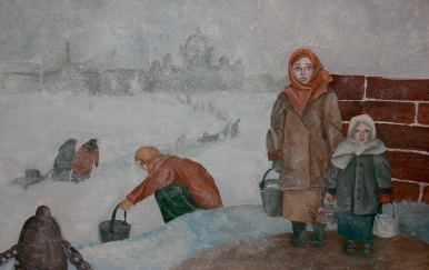 | Я ем его и понимаю, что это тот самый хлеб, что был тогда, в те страшные, голодные года. Блокадный день, блокадный хлеб: Жмых, соя, целлюлоза… Сейчас под мирным небом На полях растет пшеница. Наш хлеб, он мягонький и нежный, Но не забудут ленинградцы Тот черствый и морозно-снежный. |