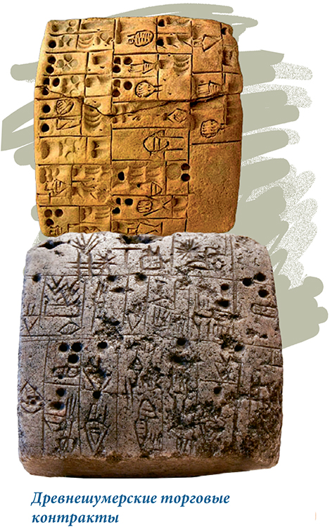 Египтяне и китайцы придумывали свои иероглифы в первую очередь для священных ритуа лов и магии. Например, самые древние китайские надписи сделаны на гадальных костях, с помощью которых предсказывали будущее. Индейцы-ацтеки создали своё рисуночное письмо для записи исторических событий и священных текстов. Это уже не просто рисунки (как в «каменной книге»), но и не письмо в привычном нам смысле: основная задача таких знаков-картинок состояла в том, чтобы напомнить читателю последовательность фактов. А вот шумеры первоначально использовали свою знаменитую клинопись для хозяйственных записей. Древнейшие дошедшие до нас надписи Двуречья, сделанные на глиняных табличках, — это торговые контракты. Значки, которыми они написаны, ещё похожи на изображения предметов. Позже, когда такие знаки стали более условными, ими начали записывать и эпос, и законы, и священные гимны.