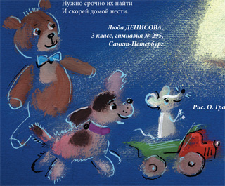 ![]() За кустами на опушке Собрались толпой игрушки. И пошли сквозь чьи-то грядки Поиграть друг с другом в прятки. Но те грядки охранялись. Все игрушки испугались. Разбежались кто куда! Не случилась бы беда! Нужно срочно их найти И скорей домой нести.