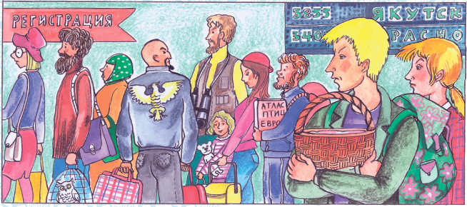 Кеша без особого труда нашел бородатого орнитолога и передал ему корзинку. К кому же обратился Кеша? За правильный ответ — 15 очков.