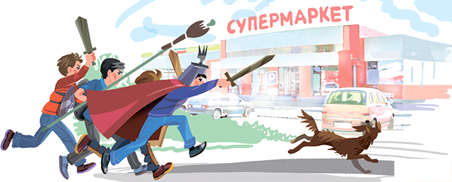 — Девочка! Малышка! — орет запыхавшийся Вадька и машет мечом перед самым носом ребенка. — Тебя тащили продать в рабство, а мы тебя освободили! Потому что мы за слабых и бедных! Понимаешь?