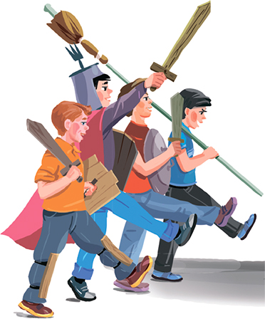 Солнце уже пригревало вовсю. Зазеленели трава и деревья. А на помойках появились сломанные велосипеды и коляски, испорченные электрические утюги и приемники, старые ржавые кровати и ободранные диваны. Да, много всякого нужного добра появилось на помойках. Но главное: всякие досочки. Из досочек получаются отличные щиты и мечи. Так что благодаря нашим помойкам мы хорошо вооружились.