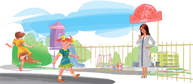 — И неправда! В нашем детском садике очень даже светло. Ну вот. Она меня тащила, а я не хотела. Я всегда не хочу в садик. Потому что там у нас мама работает, — трещала она. — Мама заставляет меня всегда доедать кашу. Меня заставляет и других. Хоть бы меня не заставляла, ведь я ее доченька. Вот я и не люблю туда ходить.