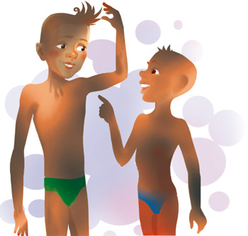 Вскоре возле нас стало много народу. Мы с Пашкой наблюдали, как мажутся другие. Одни наносили грязь только на некоторые части тела, другие мазали себя полностью, даже лицо, а один дяденька, который стоял рядом с нами, даже сделал из грязи толстую лепешку и положил ее себе на голову.