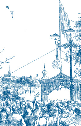 В те далекие времена воздухоплаватели разъезжали по разным городам и за деньги демонстрировали полеты, а самые бесстрашные из них совершали прыжки с парашютом.