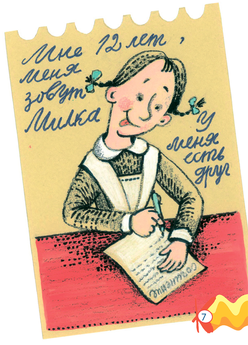 Милка поставила последнюю точку и торопливо спрятала язык. Была у неё такая детская ещё привычка — от усердия язык высовывать чуть ли не наполовину. Сочинение было тщательно переписано, все места, которые учительница поправила в оригинале, Милка исправила. И даже почерк получился идеальным, как на плакате в кабинете русского.