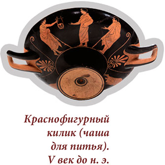 Сначала греческие гончары делали чернофигурную посуду — фигуры людей рисовали чёрным лаком по красноватой поверхности глины. Затем стали делать наоборот: лаком заливали всю поверхность вазы, оставляя красными только фигуры и орнамент. Сюжеты рисунков поначалу брали из мифов, а потом стали изображать просто самих себя: как жители Афин отдыхают, упражняются в гимнастике или игре на музыкальных инструментах. Росписи на греческой посуде — это настоящая «машина времени», окно в мир эллинов, позволяющее увидеть во всех деталях их повседневную жизнь.