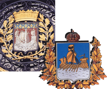 ![]() Всмотритесь в эти два герба. Герб города Парижа и герб Костромы. И там и тут — ладьи. Родство и единство. |