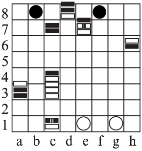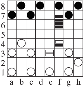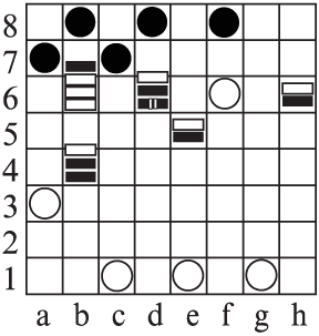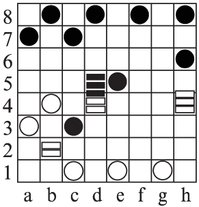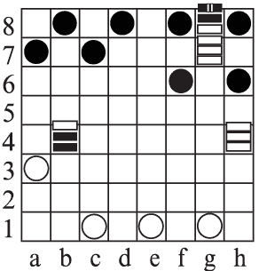 Рассмотрим партию в «кварта-башни» (см. «Костер» № 4). При ходе высокой башней перемещаются лишь четыре верхние шашки, а остальные остаются на месте.