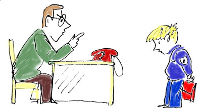 — А, это ты, Брюквин? Входи, входи, давно тебя дожидаюсь. Видишь, какая тебе честь: сам директор школы отложил свои дела, чтобы с тобой побеседовать!