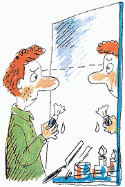 ГипнотизеркалоОдин гипнотизер чуднойРешил однажды в выходной Помолодеть, приободриться И перед зеркалом побриться. Но, челюсть бритвою скребя, Он взгляд слегка передозировал И машинально сам себя Навеки загипнотизировал. Напрасно дочка и сынишка Ему кричали: "Отомри!", Но как-то очень даже слишком Его замкнуло изнутри. И вот он в городском музее Стоит почти что двадцать лет. Вокруг толпятся ротозеи И смотрят — жив он, или нет. А прочие гипнотизеры, Смеясь над этой ерундой, Все ж от зеркал отводят взоры И зарастают бородой! Вячеслав Лейкин |