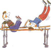 Зачет по физкультуреБыл зачет по физкультуре.Тройки — только мне и Юре, Всем — четыре или пять. Даже стыдно вспоминать, Как на брусьях мы болтались И бессмысленно смеялись. А Алферова Наташа, И краса и гордость наша, Та на брусьях так вертелась — На нее глядеть хотелось! Ей решил в любви признаться Прямо здесь — а что стесняться? И сказал: |
