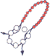 Продолжай его оплетать (схема 5) и после каждого ряда проверяй плотность прилегания бисера к шарику. Следующий ряд выполняется по схеме 6 и снова после выполнения этого ряда, необходимо пропустить нить через крайние бисерины, на схеме 7 они закрашены, а затем выполняй последующие ряды в таком же порядке до тех пор, пока в последнем ряду не останется 7 бисерин. Стяни 7 бисерин последнего ряда в кольцо и по схеме 8 начни вязать столбик в технике низания "шнуры-жгуты", его длина может составлять 1,5 — 2 см. Выполнив столбик, приступай к низанию "кисточки" на конец столбика в технике низания "кораллы" (схема 9), такие веточки можно выполнить, в шахматном порядке располагая их на трубочке-"шнуре", на схеме 9(а) эти бисерины затушеваны. Итак, половина изделия выполнена. Аналогично приступи к низанию второй половины, отличие ее будет заключаться в петельке (схема 10), прикрепленной также к кольцу из 7 бисерин. Наш шарик готов. Но его можно украсить еще и "юбочкой" в петельной технике (схема 11).
