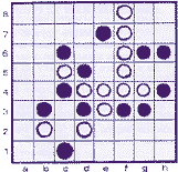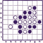 Играющий, видя, что противник выставил три из своих шашек в ряд по прямой линии, должен сейчас же выставить возле них в линию свою шашку. Иначе проиграет! Если игрок позволит противнику выставить в ряд четыре шашки, то будет уже не в состоянии помешать выставить и пятую, потому что успеет запереть ряд только с одного конца.