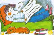 Мой папа любит спать на диване, читая газету.