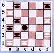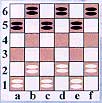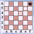 5. f4 - d6 c3 - d2 6. d5 - e1 b6 - a5 7. a1 : e5 f6 : c3 8. e5 - f6D a5 - b6