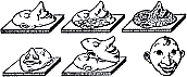 Маски из ткани могут быть составными, тогда каждая ее часть — нос, брови, уши, ресницы — выкраивается отдельно и затем наклеивается или нашивается. Для придания выпуклости щекам, лбу, носу маску кладут на туго набитый сухим песком мешочек размером 15-20 см и носовой частью сильно нагретого утюга с обратной стороны маски выдавливают выпуклости, при этом маску надо держать левой рукой, а правой — утюг, делая им кругообразные движения. Затем, если это нужно, маску раскрашивают. К нижней стороне женских полумасок обычно пришивается кружево. Маски и выкройки такого типа показаны на рис. 10.