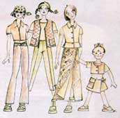 Поверх юбки или брюк надевается майка-топ. По желанию можно экспериментировать дальше: поверх майки надевают длинную рубашку-тунику, не застегивая ее до конца, а затем на выбор – стеганый жилет или короткую куртку. Завершает наряд "бандан" – это такой набивной платок темного цвета из тонкой ткани. Его надевают на голову как повязку и завязывают сзади. А на ноги можно надеть шлепанцы или босоножки на толстой подошве. Раньше ваши мамы носили туфли "на манной каше". Что-то в этом роде, но немножко измененное, представляют сейчас модные босоножки. Получился такой собирательный образ "Лето-98". Кстати, известный американский дизайнер Калвин Кляйн предлагает поверх брюк надеть еще и короткую юбку, а потом уже все, что я перечислила. Получается очень смешно, но что-то в этом есть!
