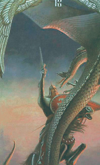 Повалил он Змея с размаху на землю, придавил ему грудь коленками, хотел отбить ещё две головы…
