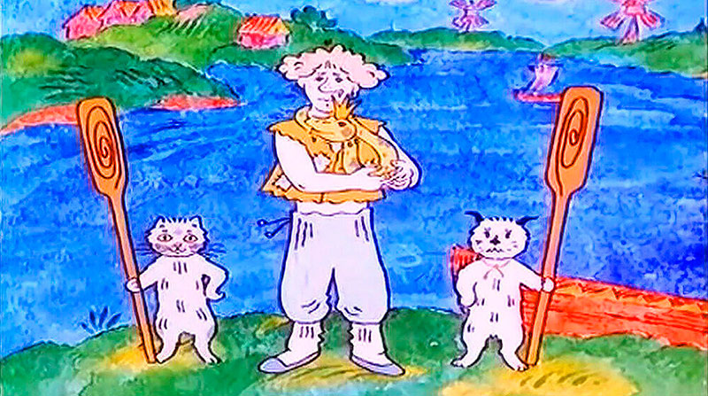 Царь-рак вылез из воды и говорит коту Ваське да собаке Журке: