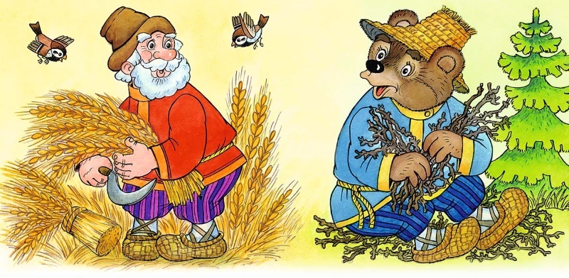 — Не ломай меня, медведюшка, лучше давай вместе репу сеять. Я себе возьму хоть корешки, а тебе отдам вершки.